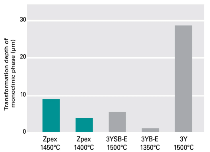 A等級含有3 mol% 氧化釔和 20 wt% 氧化鋁,該產(chǎn)品經(jīng)過熱等靜壓后具有極高的機(jī)械強(qiáng)度,非常適合生產(chǎn)高強(qiáng)度、高耐水性用途的工業(yè)用零部件。  |