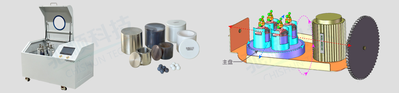 PMQW2 Multi-angle Planetary Ball Mill is equipped with four ball mill tanks on a large plate. When the ball mill tank rotates (revolution), the ball mill tank rotates in its orbit, while the plate and the ball mill tank do planetary motion, it can also flip a bucket in a three-dimensional space, and can be artificially set to run at a fixed point in any direction, which makes the grinding material more uniform and can solve the problem of sunk bottom and sticky jar of part of the material.